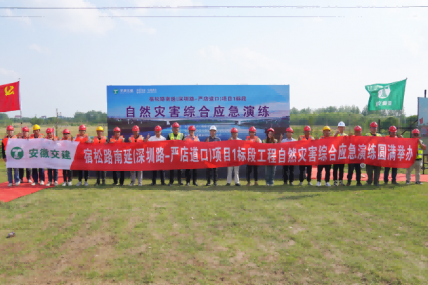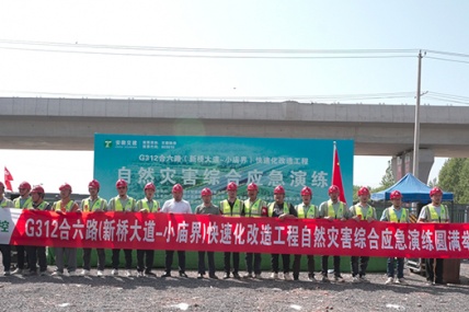 4月18日上午,安徽交建G312合六路(新桥大道-小庙界)快速化改造工程项目组织开展自然灾害综合应急演练。