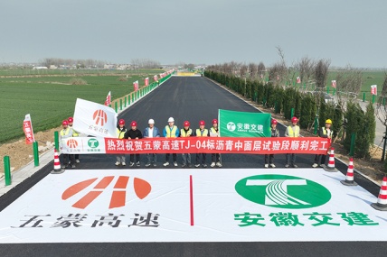 4月1日,由千亿官网承建的五蒙高速公路TJ-04标中面层沥青砼试验段顺利完成,标志着我标段正式进入沥青中面层施工阶段。