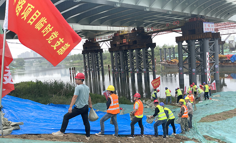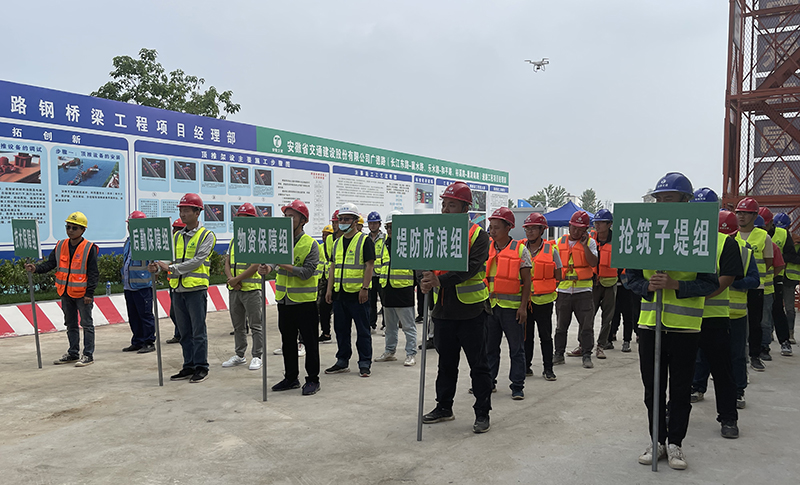 本次演练背景为连续强降雨天气,南淝河水位持续上涨即将突破警戒线,随时会洪水破堤淹没施工便道围堰堤坝、危害周围居民财产及生命安全……险情告急!
