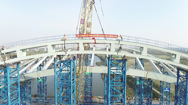 广德路跨南淝河大桥拱肋顺利合龙
