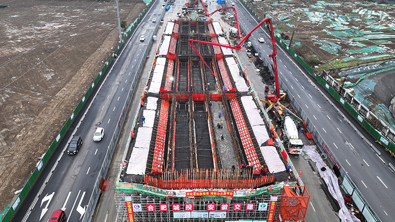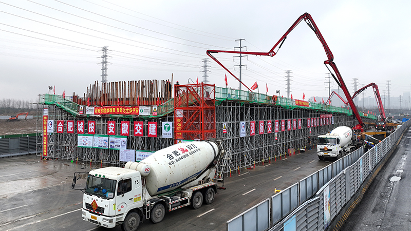 2月10日下午2点34分,安徽交建承建的宿松路快速化改造工程2标段主线桥首联现浇箱梁顺利完成浇筑任务,标志着我标段正式进入桥梁上部结构施工阶段。当日晚6点繁华大道与宿松路交口二次导改工作顺利完成。新一年工程建设大干快上的冲锋号就此吹响。