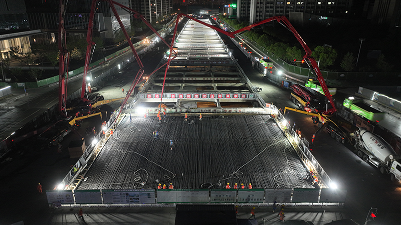 本次导改完成后,将进行叠合段南侧5个暗埋段施工。截止目前,宿松路下穿已完成32个节段底板、16个节段顶板施工,各项工作稳步推进,力争春节前完成宿松路地道主体结构施工。(通讯员 杨帆)