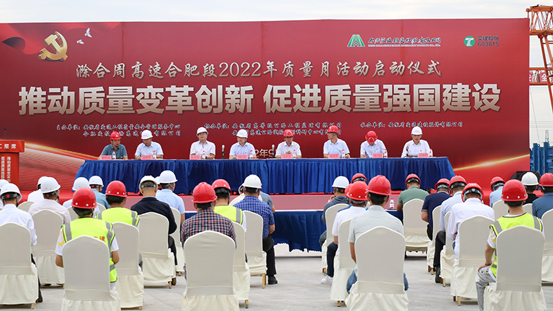 9月21日上午9时许,以“推动质量变革创新,促进质量强国建设”为主题的滁合周高速合肥段标2022年质量月活动启动仪式在千亿官网承建的合滁高速预制01标项目施工现场隆重举行。安徽省交通工程质量安全管理服务中心副主任高学华主持会议,合肥交投合滁高速公路有限公司党支部书记、总经理程岗,安徽交建常务副总裁储根法、副总裁李凡刚等参会。