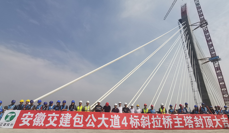 国庆献礼:包公大道跨店埠河斜拉桥主塔顺利封顶