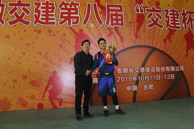 在闭幕式上,安徽交建领导吴学懿、陈明洋、吴小辉、柳欣分别为冠军、亚军、季军和MVP颁发奖杯并表示祝贺。最后,吴总宣布本届篮球比赛圆满落幕,期待明年再会!