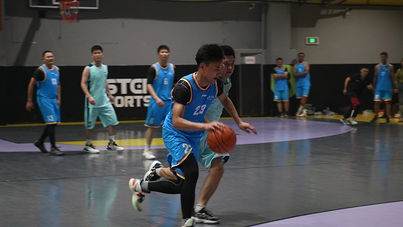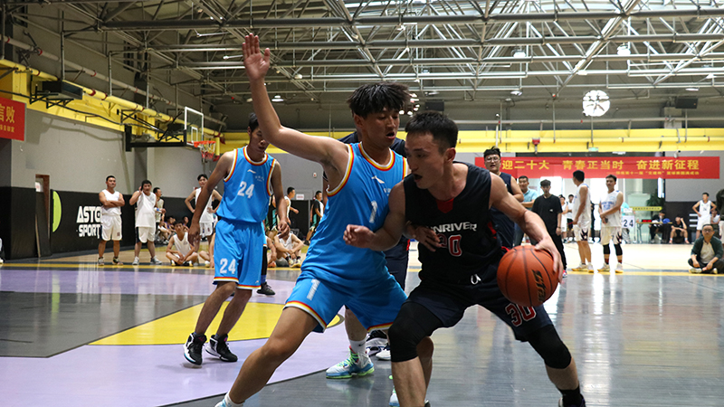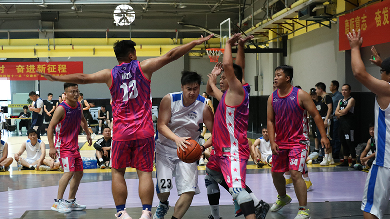 随着一声哨响,东、西两侧场地运动员在裁判抛出的篮球面前,屈膝发力,伸直手臂,“啪”的一声,完成跳球,比赛正式开始。赛场上球鞋摩擦地面,篮球砸地的声音此起彼伏,场周呐喊助威的声音不绝于耳。此时的他们抛下平日里工作时的严肃形象,身影矫健、防守周密,拼尽全力奋力厮杀,他们勇敢果断、活力无限。他们用精湛的球技和坚韧拼搏、誓不言败的精神,为观众们奉献了许多精彩的瞬间。