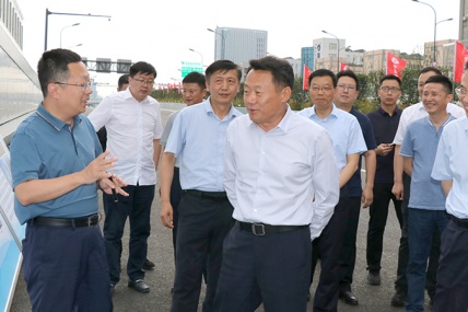 6 月29 日下午,安徽省委常委、合肥市委书记虞爱华一行调研由安徽交建承建的宿松路快速化改造 2 标段项目建设。