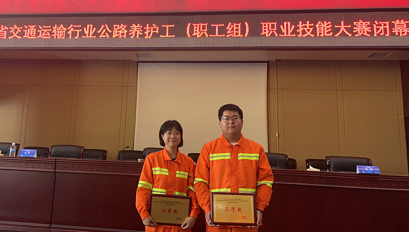 10月31日,千亿官网代表队(路通检测周蓉、技术信息中心王硕)在2024年第十五届全国交通运输行业公路养护工(职工组)职业技能大赛安徽省选拔赛中,分别荣获个人赛二等奖、三等奖。