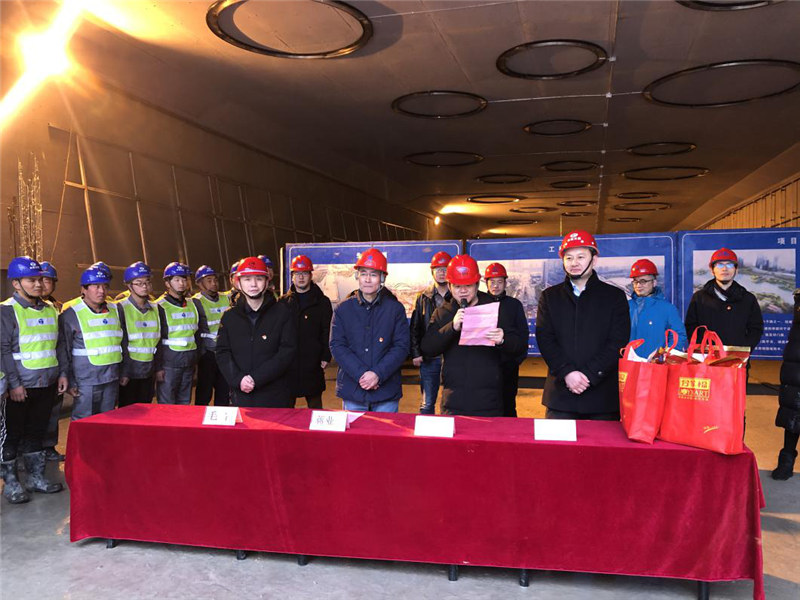 1月16日,合肥城建投资控股有限公司党支部组织广大党员志愿者到怀宁路下穿天鹅湖隧道工程项目开展主题活动暨“城投匠人行 温暖回家路”志愿服务活动。城投公司党支部书记、董事长蒋业超,总经理曾治国,副总经理毛雷,交建股份副总经理李凡刚参加活动。