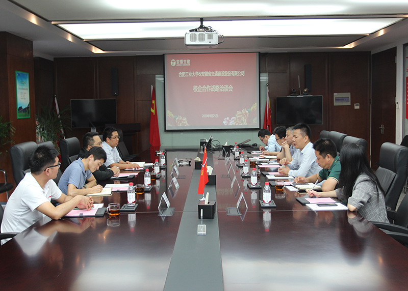 2020年9月25日下午,合肥工业大学汽车与交通工程学院党委副书记、纪委书记张金伟等一行四人莅临千亿官网,就校企战略合作相关事宜进行洽谈。公司总裁彭小毛、总工程师储根法、副总裁陈明洋等出席洽谈会,会议由交建股份副总裁吴小辉主持。