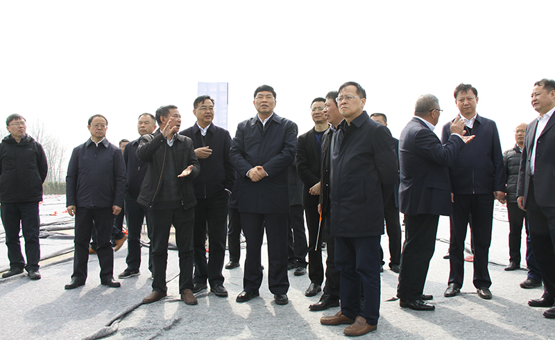3月5日,安徽省副省长何树山一行莅临安徽交建承建的固蚌高速路基三标洪集枢纽处视察2021年“县县通高速”固蚌高速项目建设进展情况。蚌埠市市委书记黄晓武、安徽省交通厅厅长章义、安徽省交通控股集团董事长项小龙及总经理钱东升、固蚌高速项目办主任房涛、安徽交建固蚌高速GB-3标项目经理程海波陪同。
