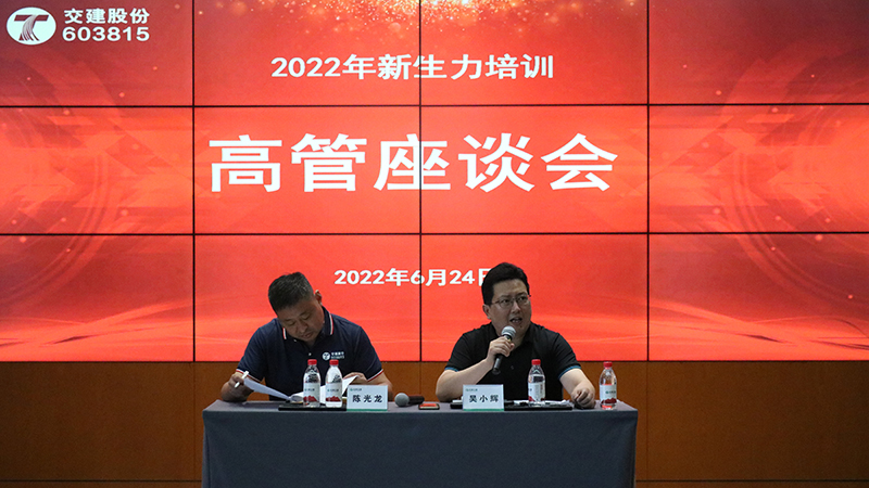 次日进行的高管座谈环节,安徽交建总裁吴小辉先生结合自己在公司的成长经历,分享了他在工作中的成功经验,并就当前公司的发展战略、行业形势及就业趋势向在座的实习生们给予了职业发展规划指引和未来工作上的指导,让他们更加坚定了加入交建工作的决心,明晰了自身的工作目标和职业发展方向。