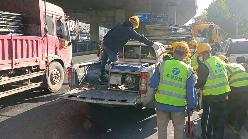 10月22日,因经开区疫情防控要求,需连夜对始信路以东、紫云路以南、卧云路以北、天都路以西区域进行封闭。在接到经开区管委会的消息后,安徽交建宿松路2标、7标项目迅速响应,立即组织人员、车辆设备及围挡材料赶赴现场,经过一夜奋战,前后出动人员30余人次,应急车辆7余台次,顺利完成封闭围挡的安装工作。