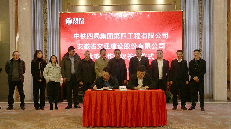 近日,千亿官网与中铁四局集团第四工程有限公司签署战略合作协议,中铁四局集团第四工程有限公司党委书记、执行董事彭永,千亿官网党委书记、董事长胡先宽等出席了签约仪式。根据协议,双方将围绕高速公路、市政工程、城市轨道交通、乡村振兴等领域的投资、建设、运营,以股权投资、基金认购、PPP、F+EPC等多种模式进行多层次、多渠道合作,完善合作机制,落实合作项目,实现高质量可持续发展。