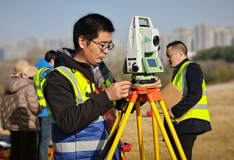 据悉,此次大赛旨在提高测量行业从业人员的技能水平,推动行业发展。我司委派合肥新桥机场S1号线项目测量主管吕心院、技术主管刘逸凡及新汴河航道项目测量主管张硕代表公司参赛,与全市22家参赛企业共66名选手同台竞技,展示精湛技艺。安徽交建包公大道04标项目副经理金礼强、轨道交通2号线东延项目副总工王旭东受邀担任比赛裁判员。本次测量技能竞赛分为理论考试和实操竞技两个部分,包括导线测量、水准测量等项目,采用个人和团体赛形式完成规定竞赛内容。